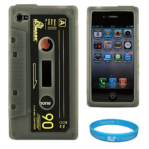 Smoke Cassette Tape Design Protective Rubberized Silicone Skin Cover Case for Verizon Wireless iPhone 4 4th Generation 16GB 32GB and AT&T iPhone 4 + SumacLife TM Wisdom Courage Wristband Review