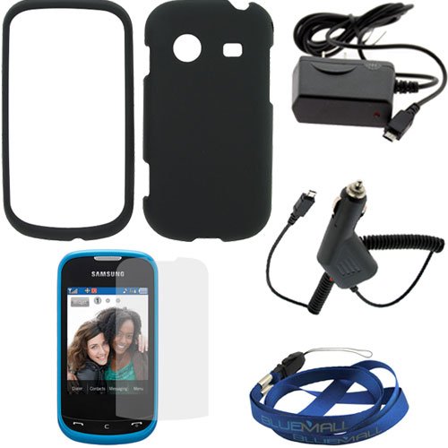 GTMax Black Hard Rubberized Snap On Case + Clear LCD Screen Protector + Car Charger + Home Charger for US Cellular Samsung Character CH-R640 (FREE Gift BlueMall Neck Strap Lanyard Included) Overview