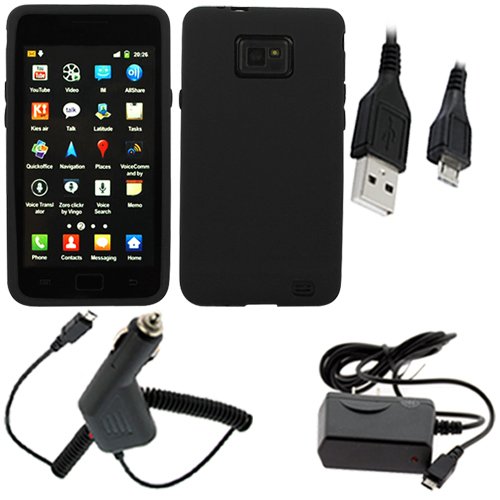 GTMax Black Soft Silicone Case + Car Charger + Home Charger + USB Sync Data Cable for AT&T Samsung GALAXY S2 / SII I9100/i777 G4 (Free Gift Bluemall Neck Strap) Review